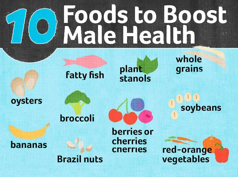 Whole grains. A whole grain-based diet can reduce bad cholesterol and fortify prostate and muscle health.