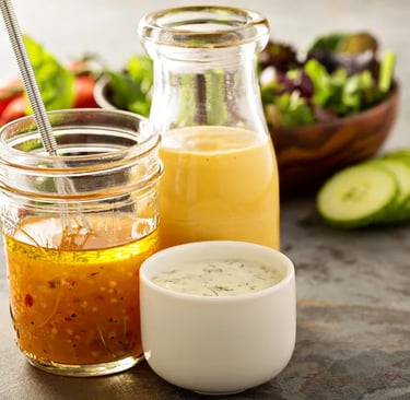 The 15 wholesome salad dressings presented below let you know precisely what they contain. Many are based on olive oil, some get the creaminess from natural Greek yogurt or tahini, and a few are sweetened with honey--a natural sweetener.